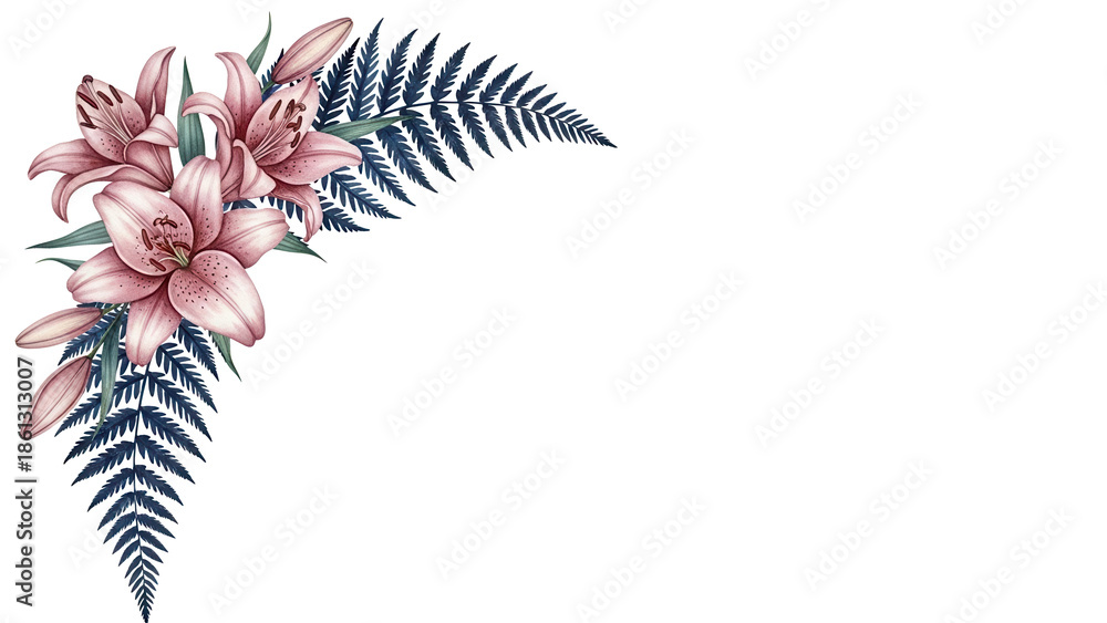 Luxury Watercolor Corner Design Featuring Lilies And Fern Wallpaper Mural - Decorly Solutions | Decorly Solutions