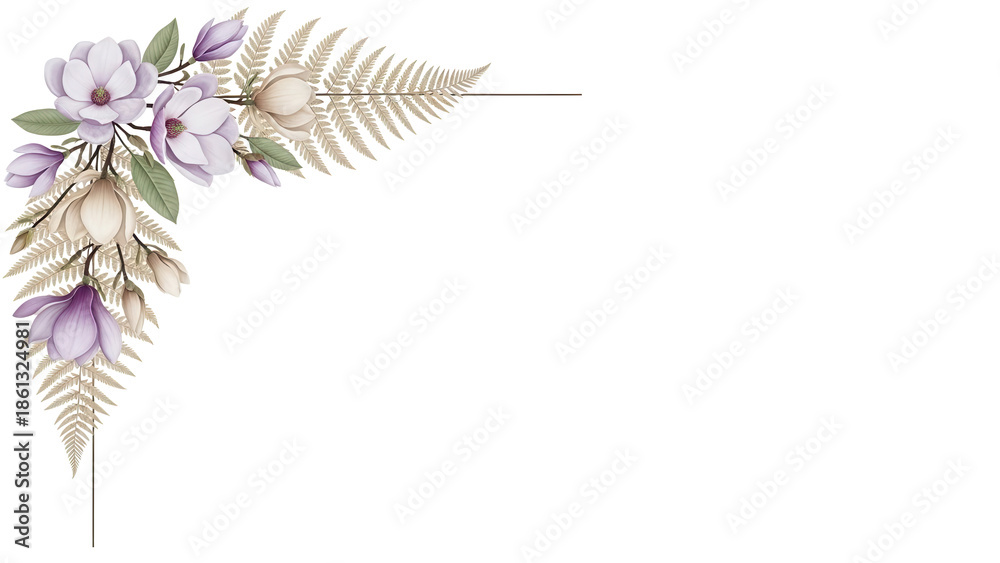 Minimal luxury floral corner border with magnolia and fern i Wallpaper