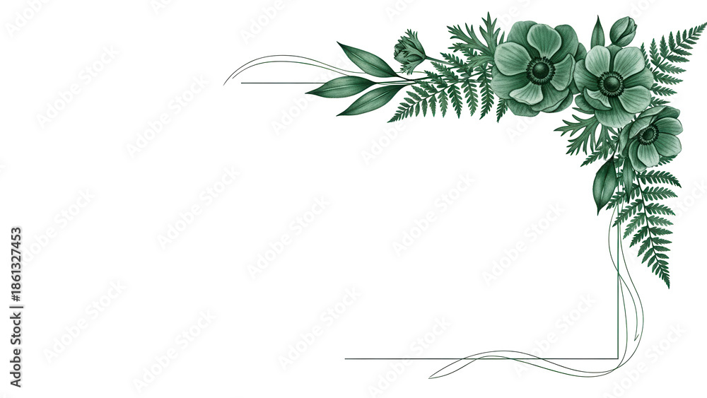 Minimal Luxury Watercolor Floral Frame Corner With Anemones Wallpaper Mural - Decorly Solutions | Decorly Solutions