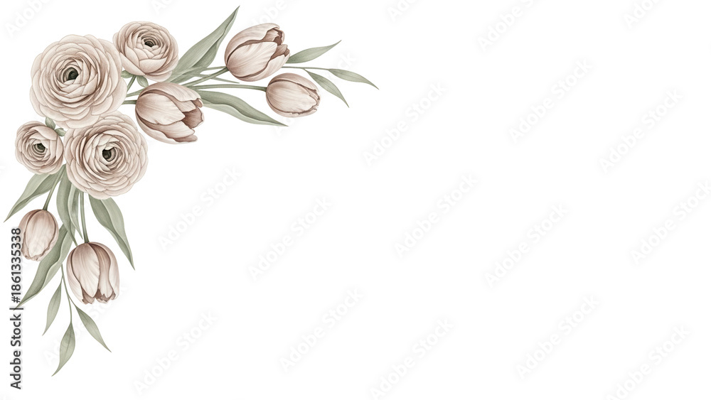 Soft Hand Painted Floral Corner Border With Tulips Wallpaper Mural - Decorly Solutions | Decorly Solutions