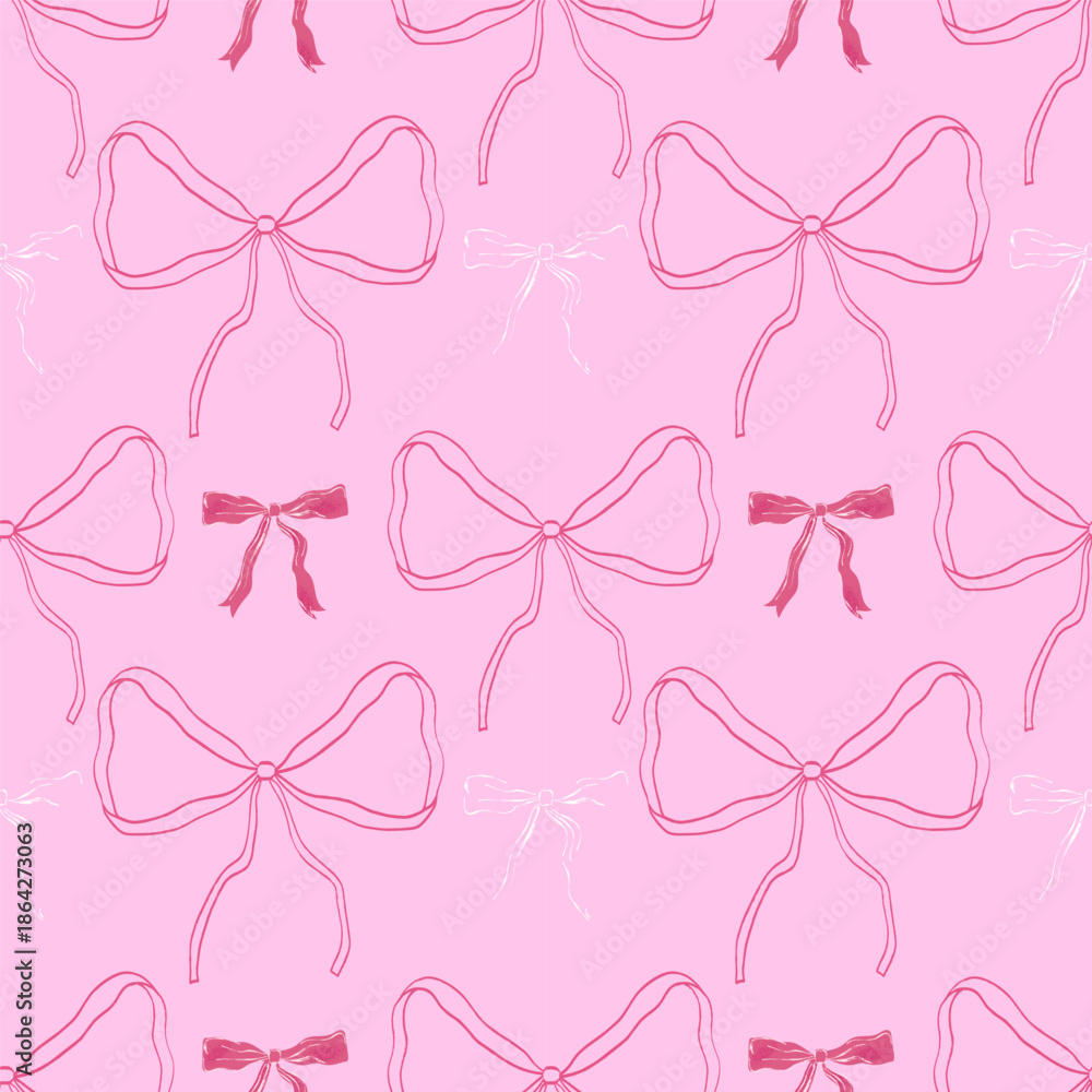 Cute Coquette Ribbon Bow Collection Hand Drawn Ribbon Wallpaper Mural - Decorly Solutions | Decorly Solutions