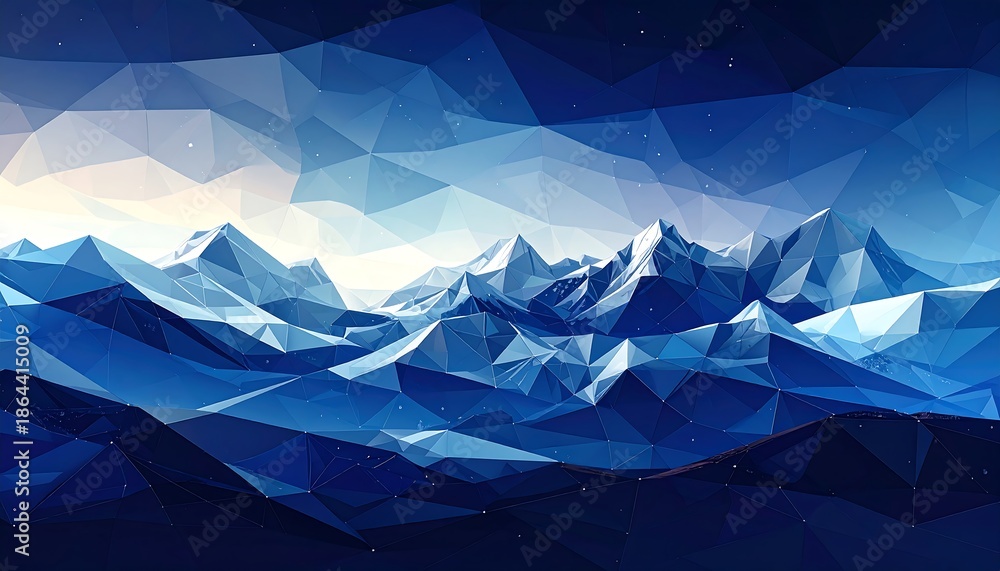 Geometric Landscape With Peaks Reflecting Blue Tones Of Wallpaper Mural - Decorly Solutions | Decorly Solutions