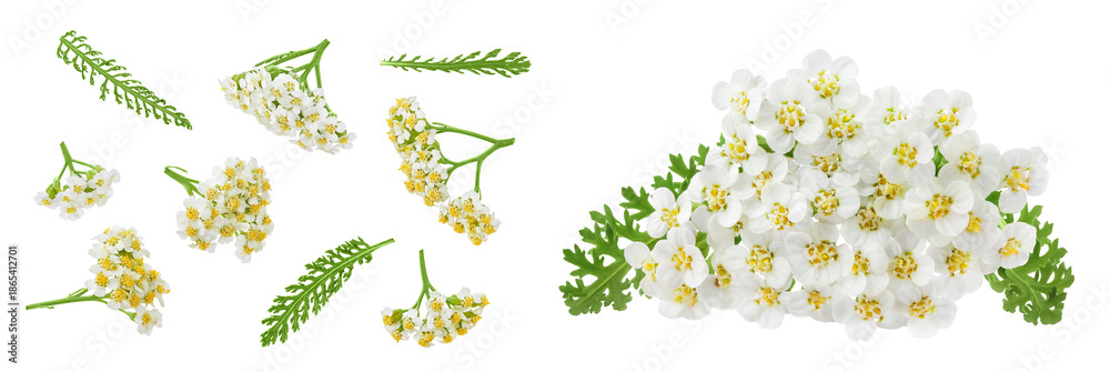 Fresh yarrow flowers isolated on white background Top view F Wallpaper