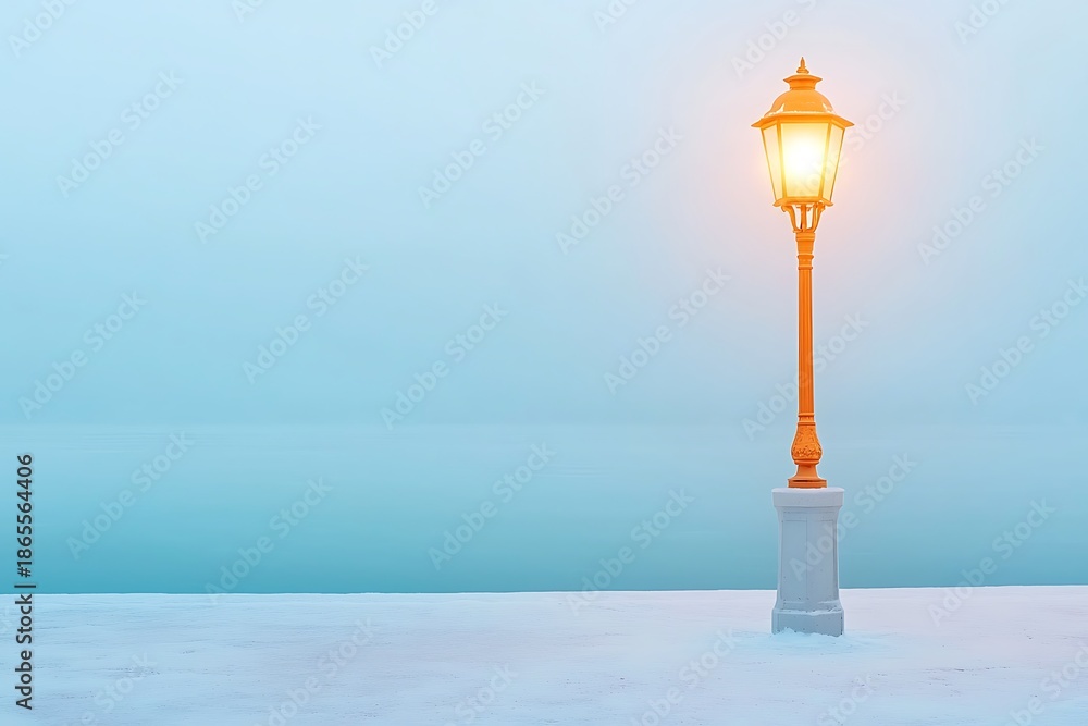 Vintage lamp post glowing softly amidst tranquil snow-covere Wallpaper