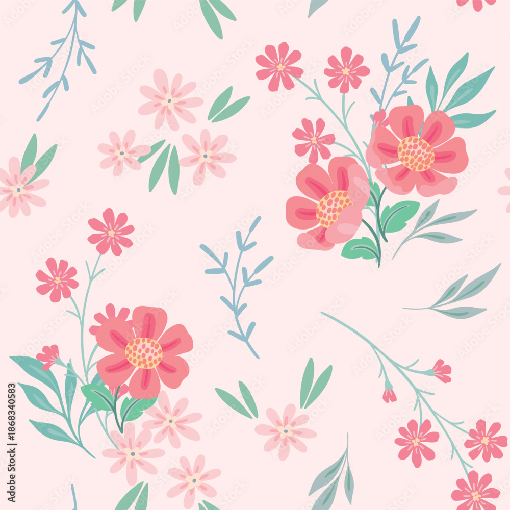 Seamless Floral Pattern Delicate Ditsy Print In Pastel Wallpaper Mural - Decorly Solutions | Decorly Solutions