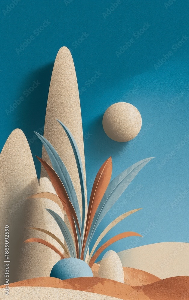 Abstract Landscape with Colorful Vegetation and Sun Wallpaper
