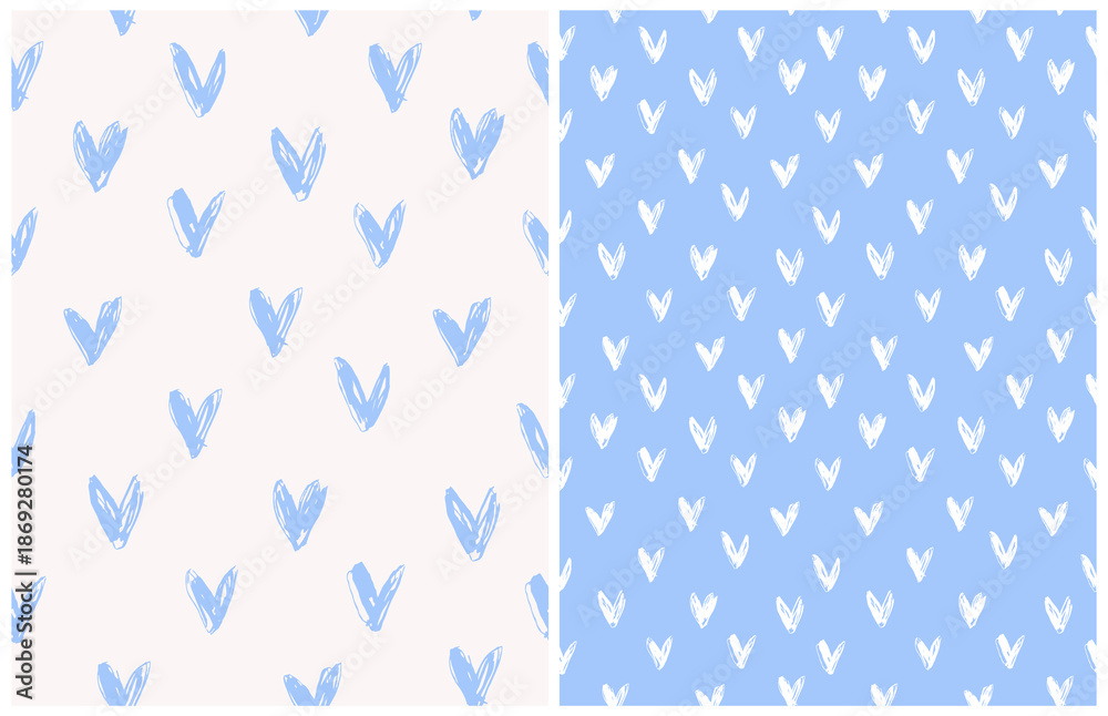Simple Irregular Heart Print Hand Drawn Hearts On a Pastel B Wallpaper