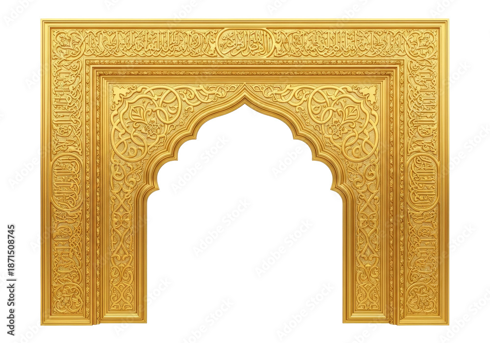 Ornate moroccan archway with intricate geometric patterns isolated on transparent background