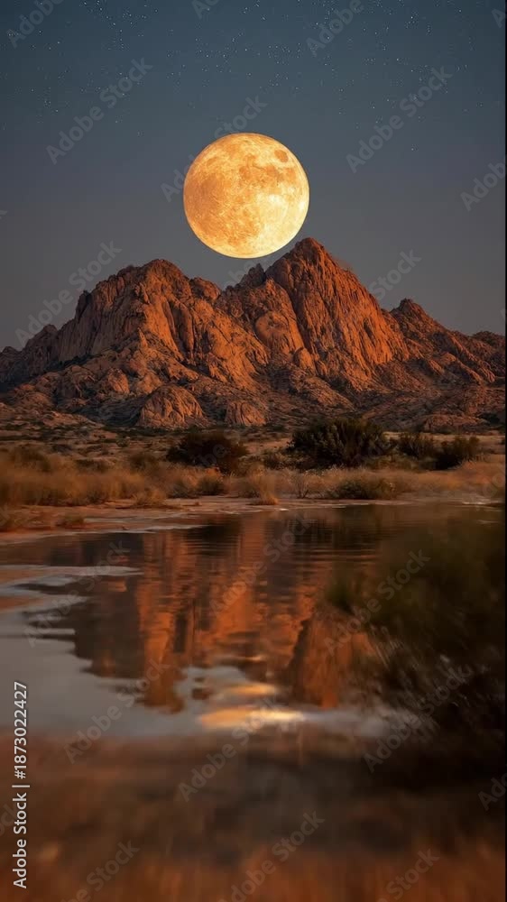 Giant Full Moon Rising Over Rocky Desert Mountains Wallpaper Mural - Decorly Solutions | Decorly Solutions