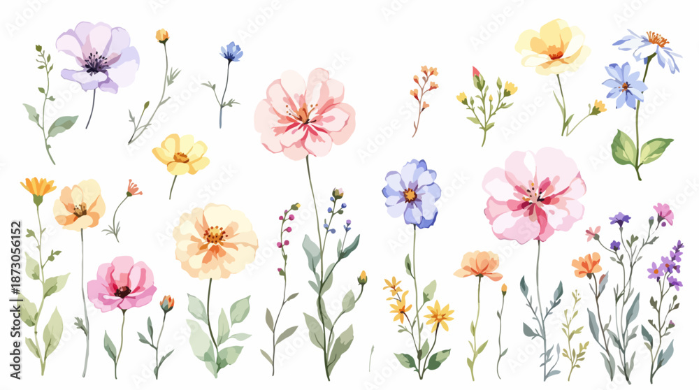 Colorful spring flowers, Set of watercolor flowers, Clipart watercolor flowers