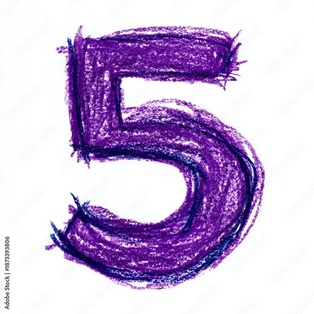 Hand-drawn Number 5 In Purple And Black Crayon Wallpaper Mural - Decorly Solutions | Decorly Solutions