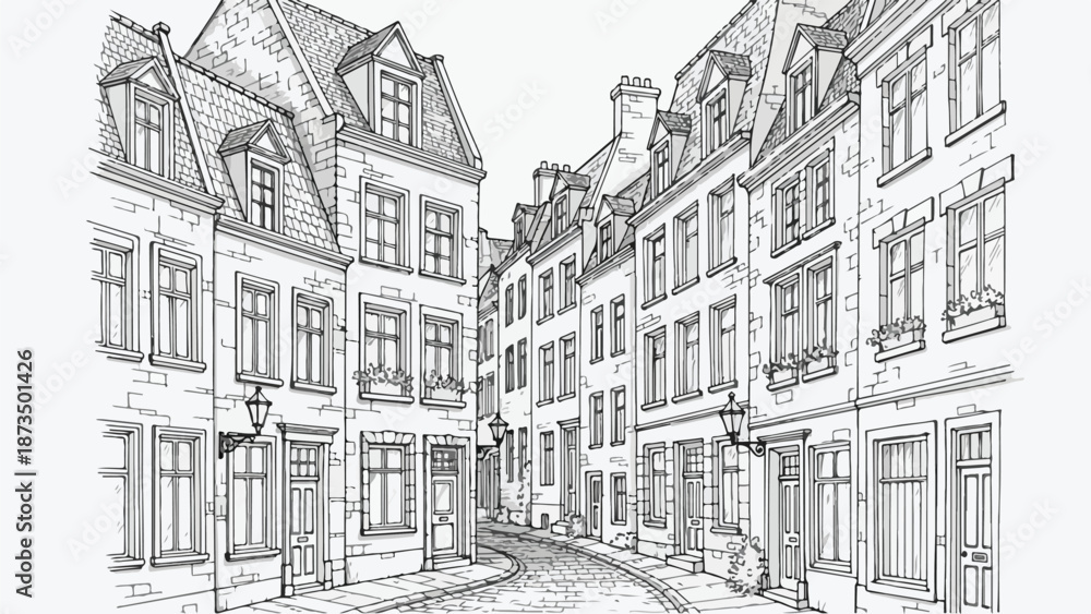 Old European Town Narrow Street With Historic Buildings Wallpaper Mural - Decorly Solutions | Decorly Solutions
