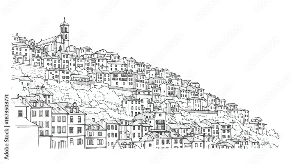Dense Hillside Village With Traditional Mediterranean Houses Wallpaper Mural - Decorly Solutions | Decorly Solutions