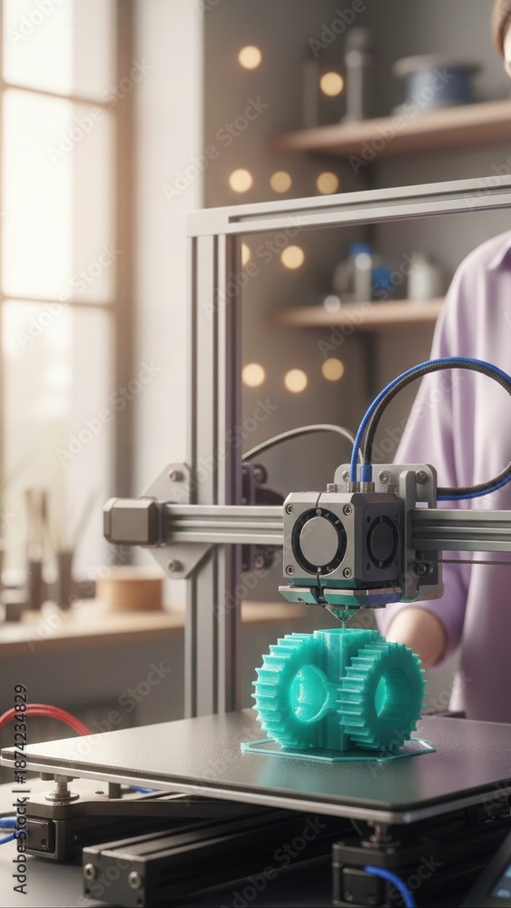 Close Up Of 3d Printer Extruding Cyan Geometric Wallpaper Mural - Decorly Solutions | Decorly Solutions
