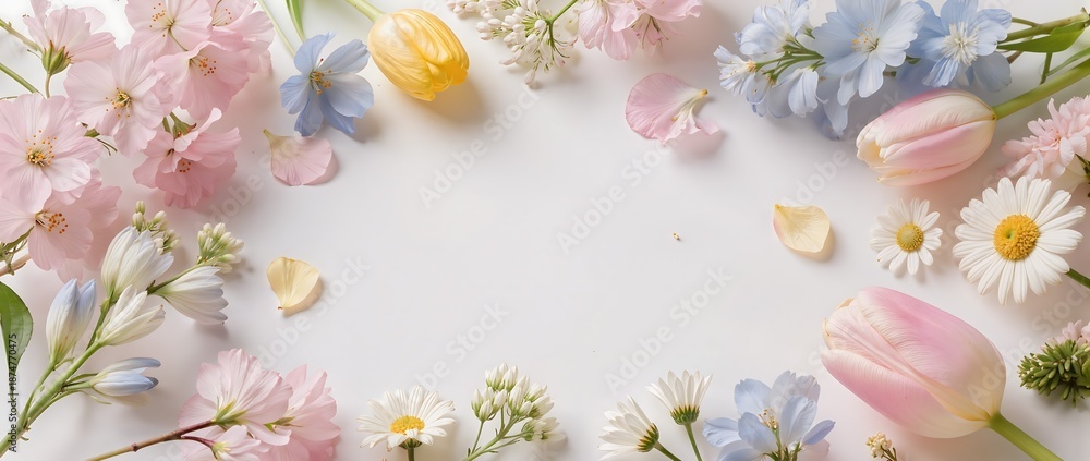 春の花々が縁取る柔らかな季節の背景 Wallpaper Mural - Decorly Solutions | Decorly Solutions