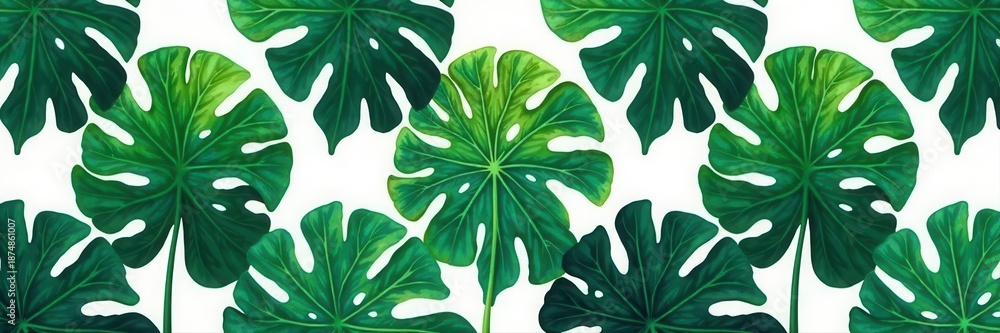 Symmetrical Monstera Leaf Silhouettes Tropical Foliage Pattern Minimal Wallpaper Mural - Decorly Solutions | Decorly Solutions