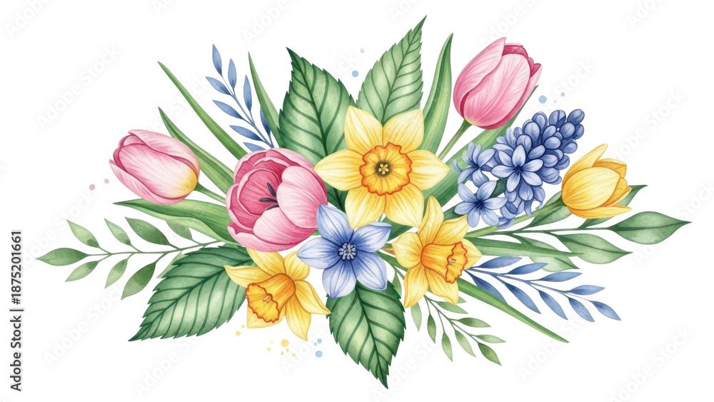 Flowers And Leaves Digital Illustration Spring Design Watercolor Wallpaper Mural - Decorly Solutions | Decorly Solutions