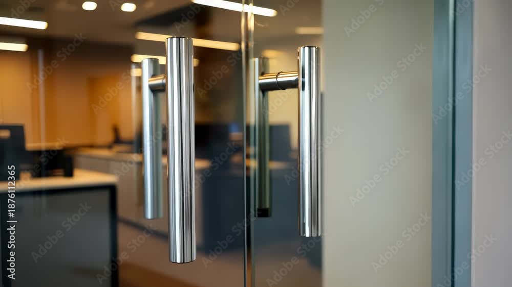 Modern Office Glass Door With Chrome Handles Wallpaper Mural - Decorly Solutions | Decorly Solutions