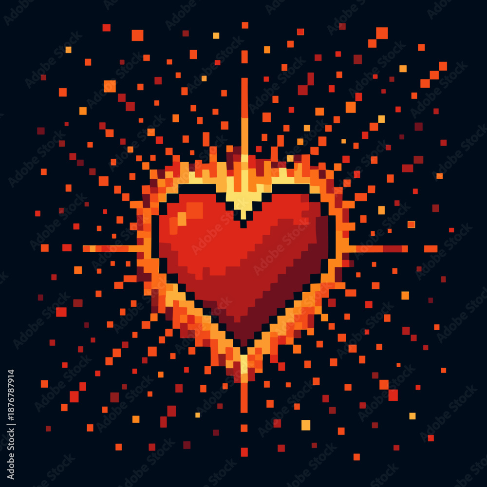 Pixel Art Glowing Red Heart Surrounded By Radiant Wallpaper Mural - Decorly Solutions | Decorly Solutions