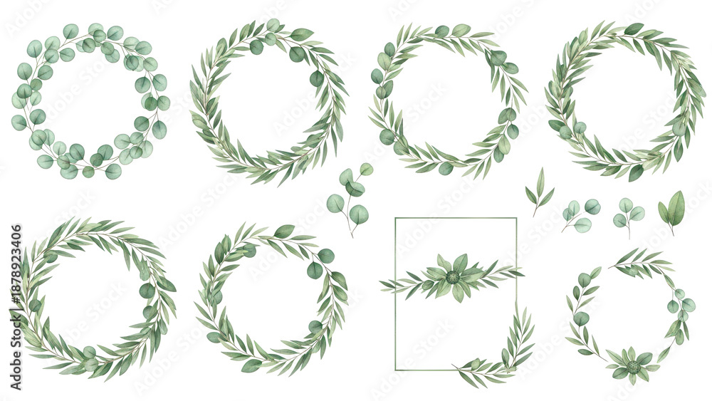 Watercolor Floral Illustration Set Green Leaf Frame Collection Wallpaper Mural - Decorly Solutions | Decorly Solutions