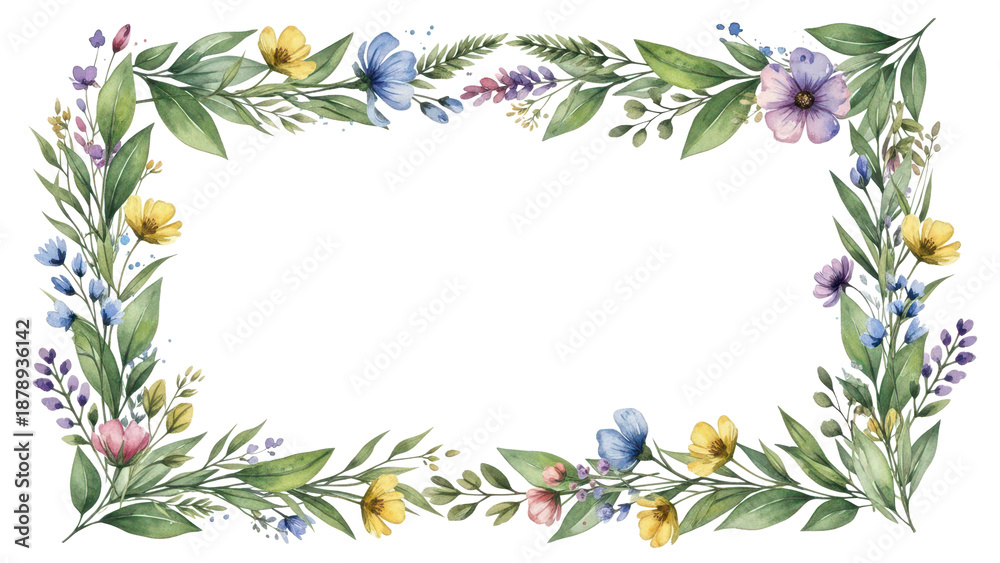 Watercolor Floral Seamless Border Hand Painted Frame Of Wallpaper Mural - Decorly Solutions | Decorly Solutions