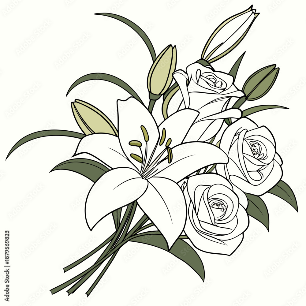 Lily Silhouette Line Art Vector Illustration