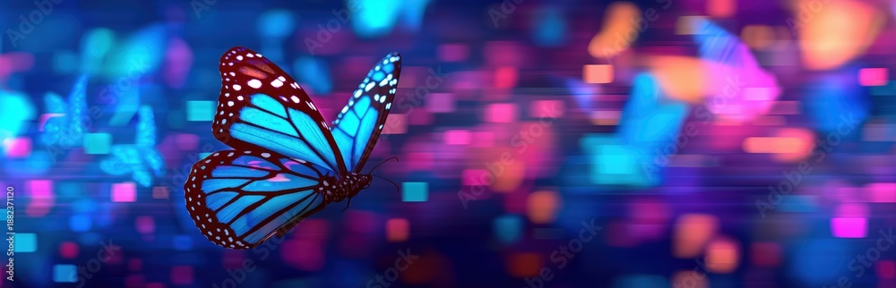 Blue butterfly moving through a dynamic abstract background Wallpaper