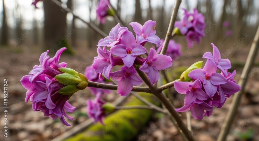 Daphne Mezereum Blooming In The Forest During Springtime Wallpaper Mural - Decorly Solutions | Decorly Solutions