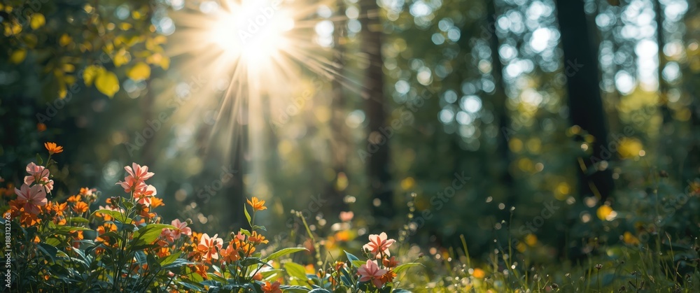 The sun's rays enhance the beauty of flowers and leaves maki Wallpaper