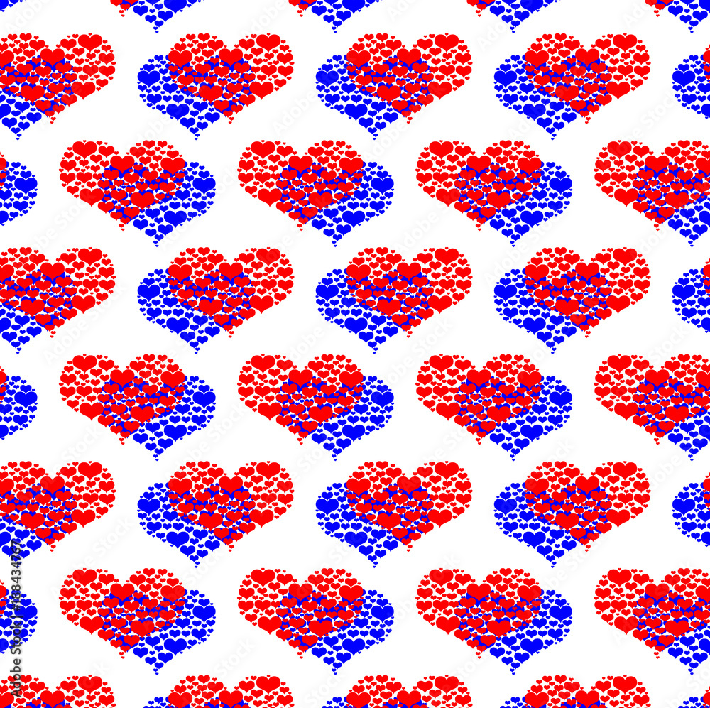 Red and blue heart vector pattern - red and blue pattern on a red and blue background