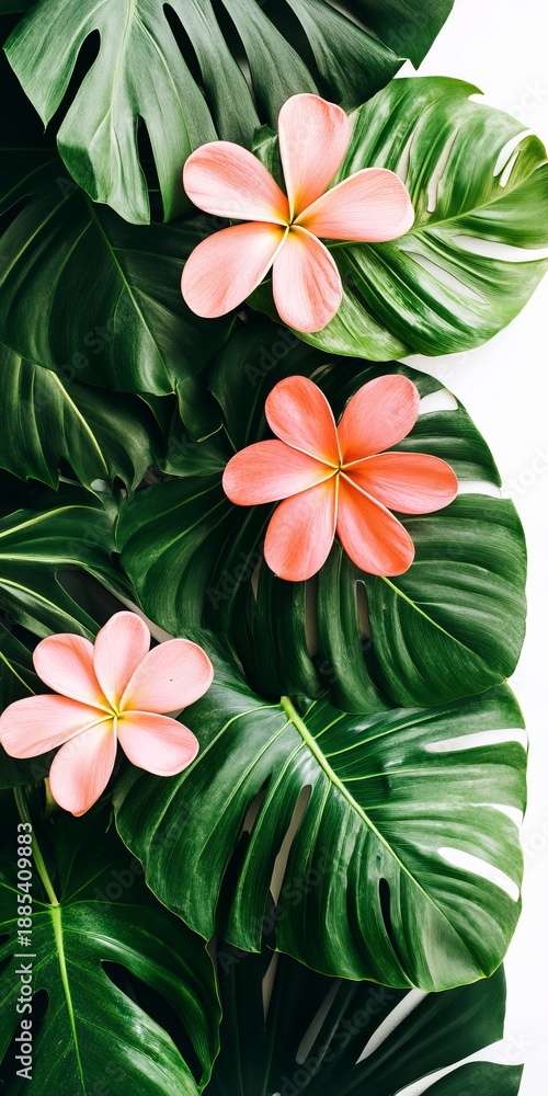 Tropical Serenity with Monstera Leaves and Frangipani Blosso Wallpaper