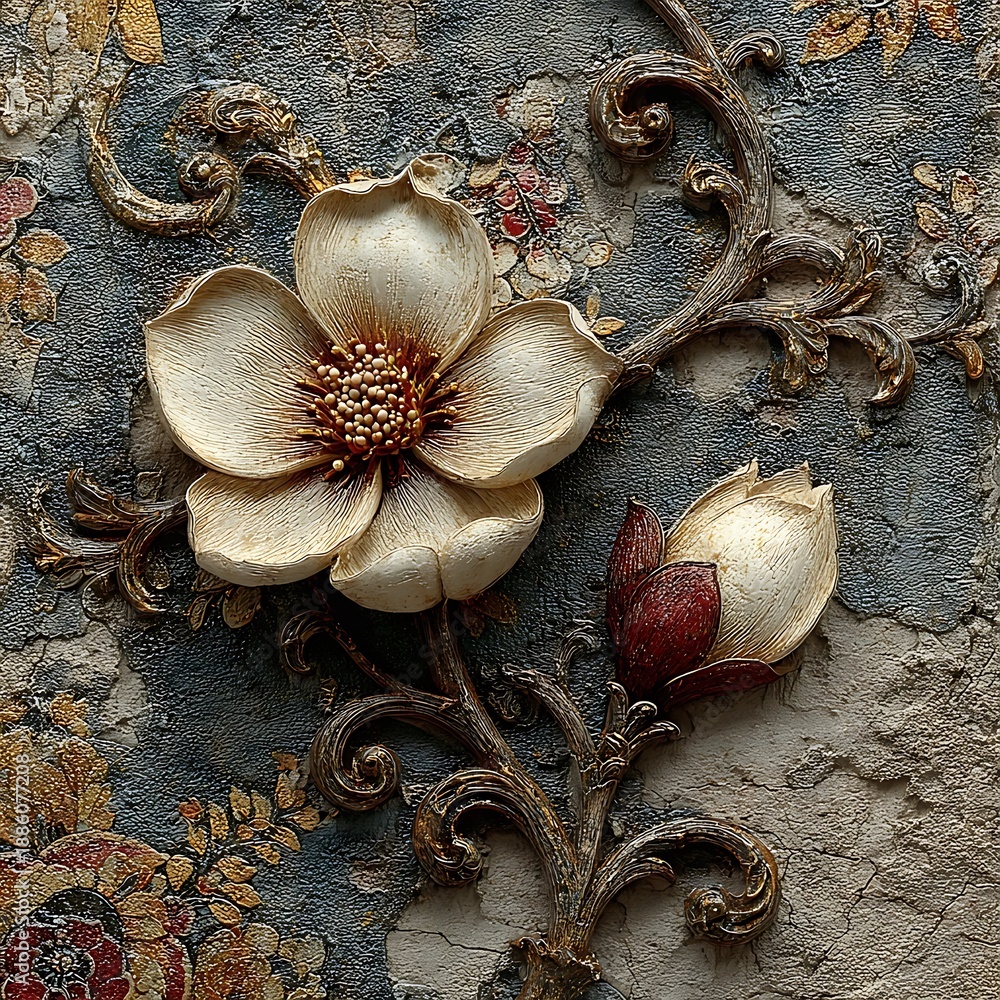 Vintage Floral Wall Art With Embossed Flower High Wallpaper Mural - Decorly Solutions | Decorly Solutions
