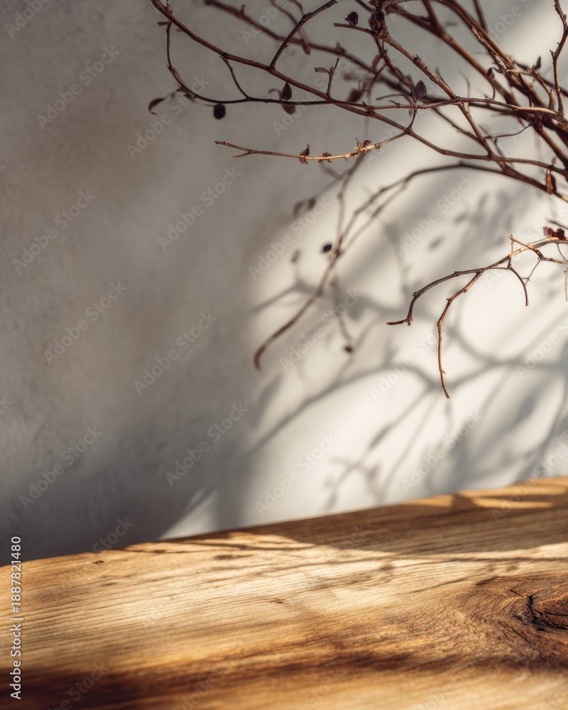 Elegant Rustic Scene With Wooden Table And Branches Wallpaper Mural - Decorly Solutions | Decorly Solutions