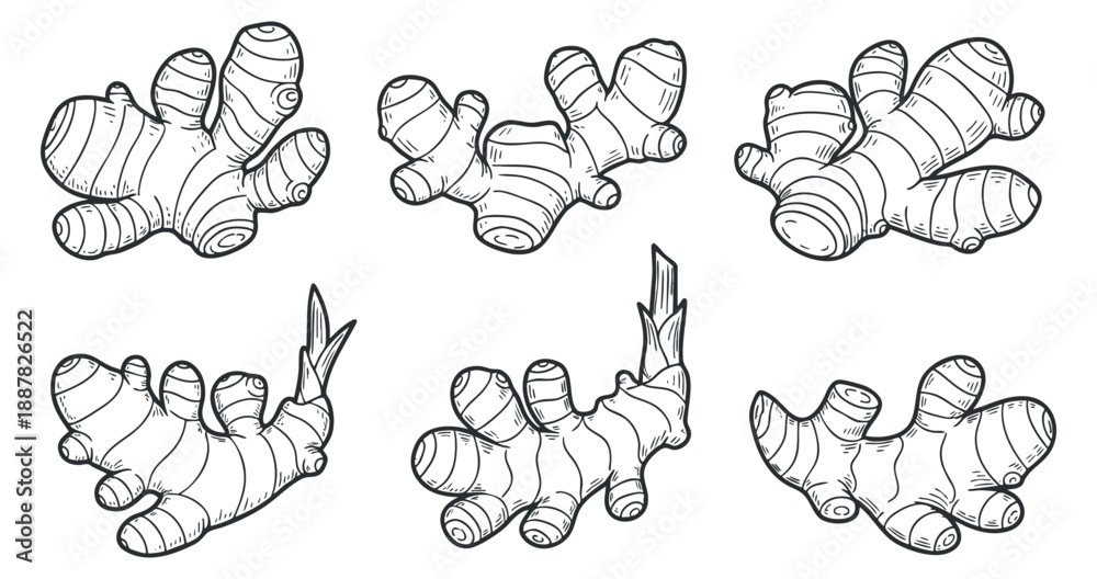 A Collection Of Hand-drawn Ginger Root Illustrations In Wallpaper Mural - Decorly Solutions | Decorly Solutions