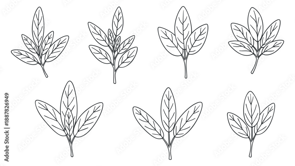 A Collection Of Various Leaf Designs In Outline Wallpaper Mural - Decorly Solutions | Decorly Solutions
