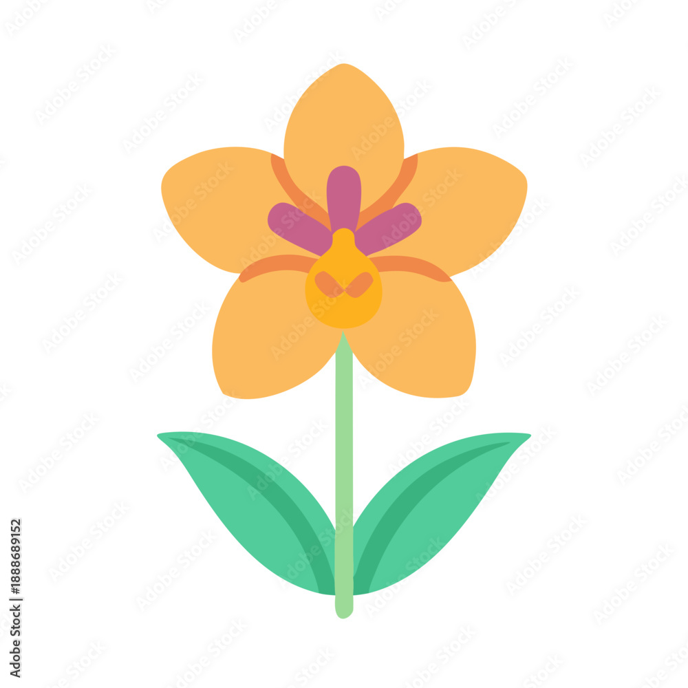 Single Flat Design Flower With Stem And Leaves Wallpaper Mural - Decorly Solutions | Decorly Solutions
