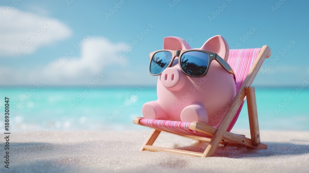 Piggy Bank Relaxing On Beach Chair With Sunglasses Wallpaper Mural - Decorly Solutions | Decorly Solutions