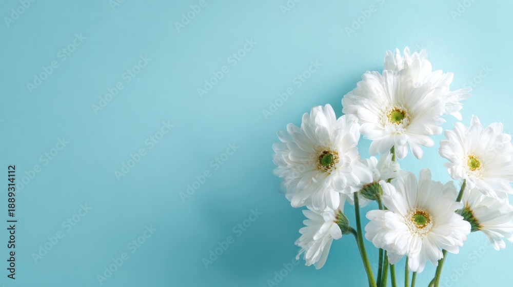White Daisies On Light Blue Background With Delicate Wallpaper Mural - Decorly Solutions | Decorly Solutions