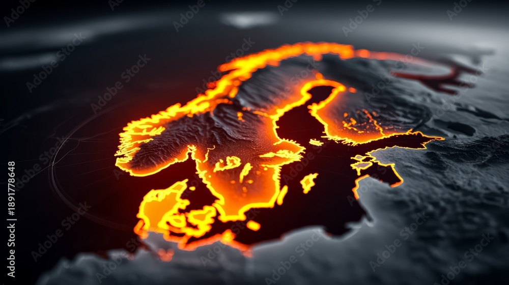 Map Of Europe With A Red And Orange Wallpaper Mural - Decorly Solutions | Decorly Solutions