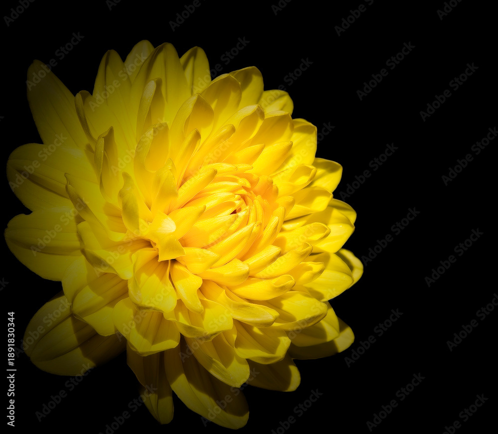 Vibrant Yellow Dahlia Flower On A Black Background Wallpaper Mural - Decorly Solutions | Decorly Solutions