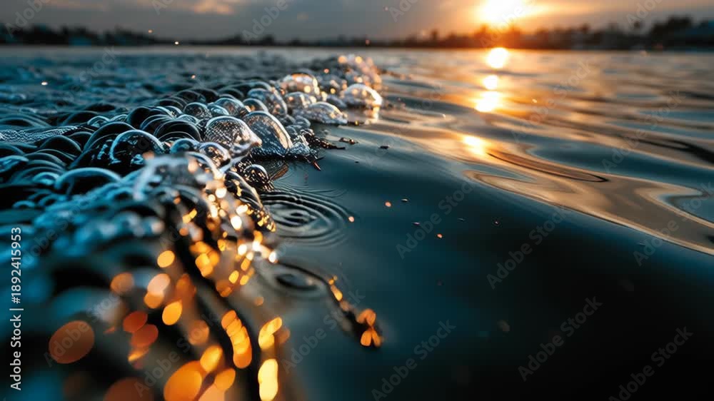 Golden Hour Tide, A Serene Beach Scene Captured At Sunset With Waves Gently Lapping At The Shore, Reflecting The Stunning Golden Light Of The Setting Sun