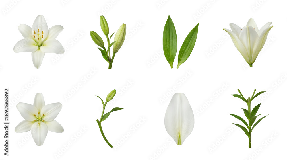 White lily set including open flowers closed buds green leav Wallpaper