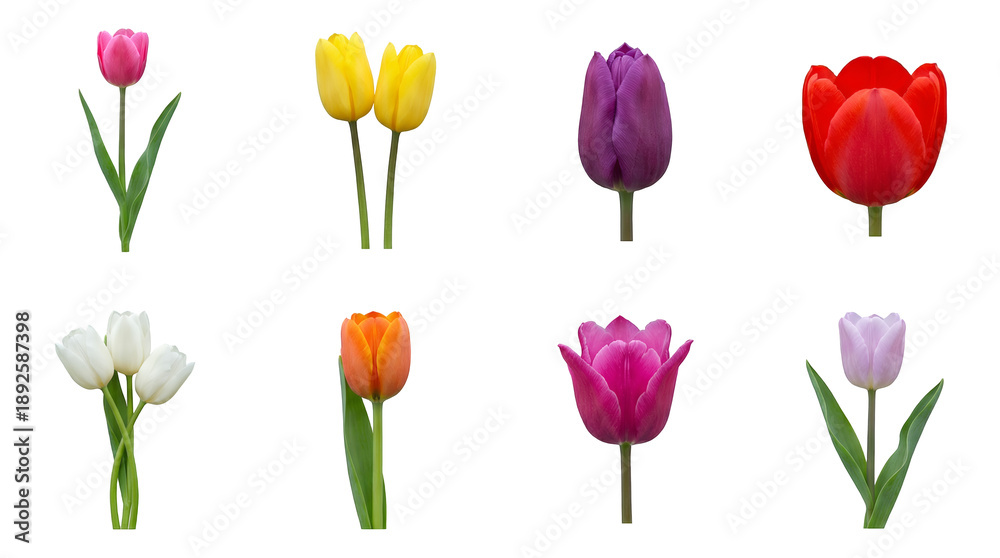 Tulip Flower Set Including Pink Yellow Purple Red Wallpaper Mural - Decorly Solutions | Decorly Solutions