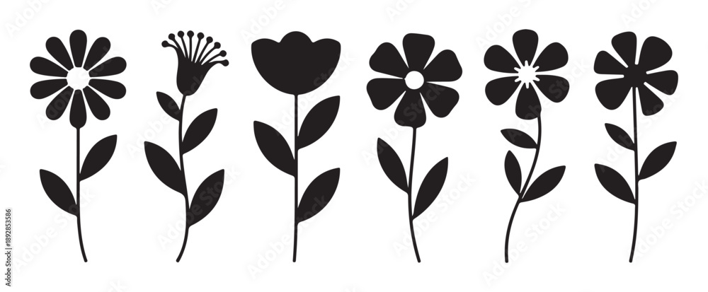 Flat design black silhouette flower icons on white backgroun Wallpaper