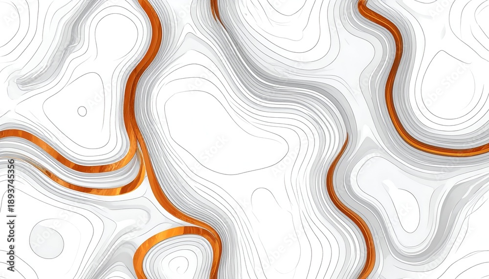 Abstract topographic map with flowing bronze accents on a wh Wallpaper