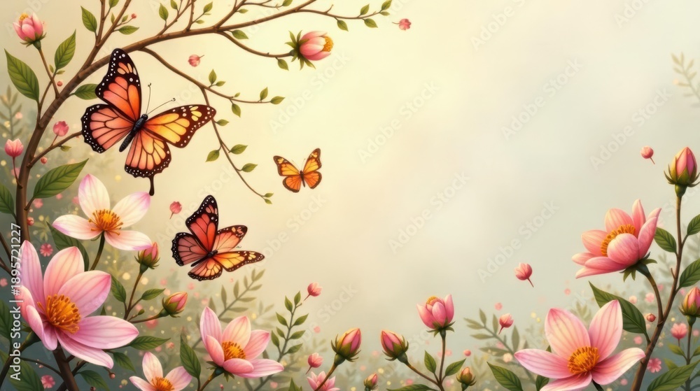 Serene Springtime Blossom And Butterfly Scene A Delicate Wallpaper Mural - Decorly Solutions | Decorly Solutions