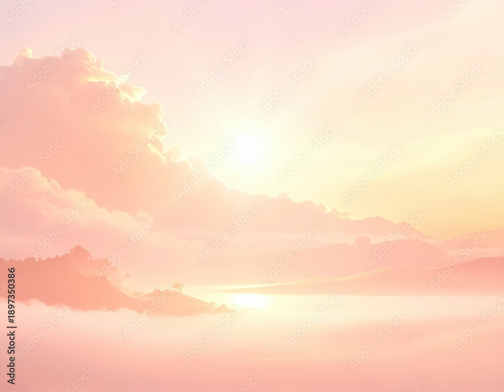 Serene Sunrise Over Misty Horizon With Soft Pink Wallpaper Mural - Decorly Solutions | Decorly Solutions