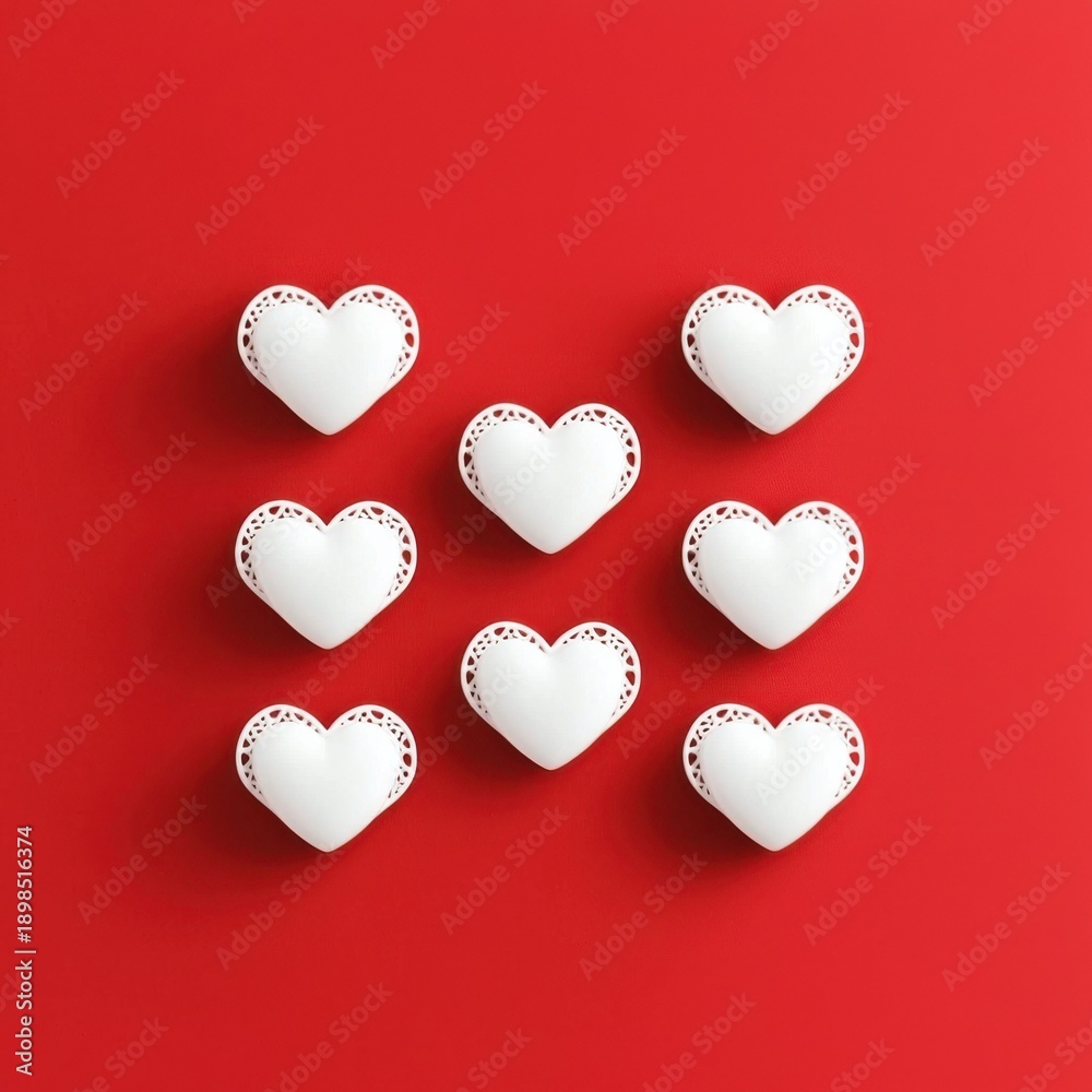 A vibrant arrangement of red hearts forms a decorative frame against a white background, symbolizing love and affection.