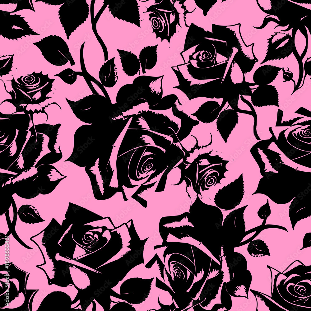 Seamless graphic floral pattern black roses on pink backgrou Wallpaper
