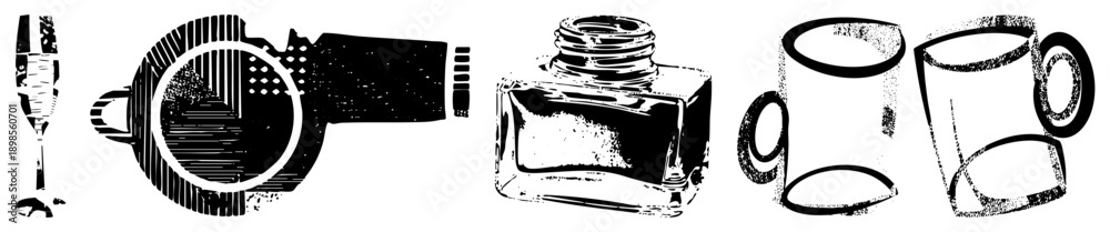 Retro Ink Bottle Glassware Collection Halftone Texture Vintage Wallpaper Mural - Decorly Solutions | Decorly Solutions